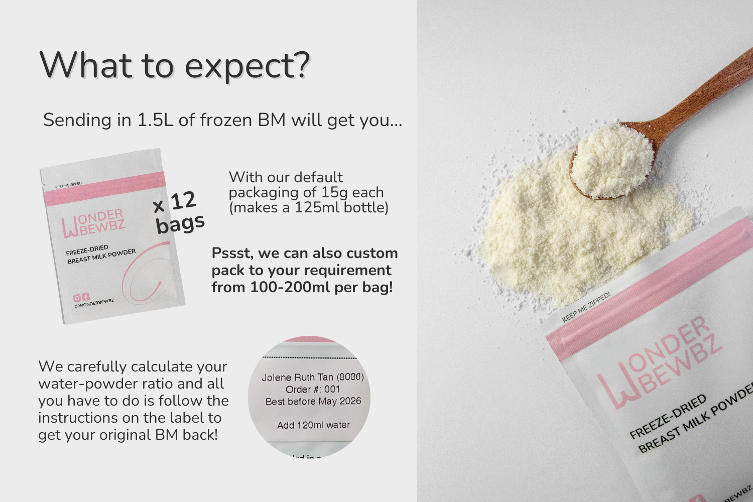 Your breast milk is processed in an ISO-6 certified cleanroom. Our methods are tested by SGS Singapore, SFA's accredited lab. Read more in our FAQs